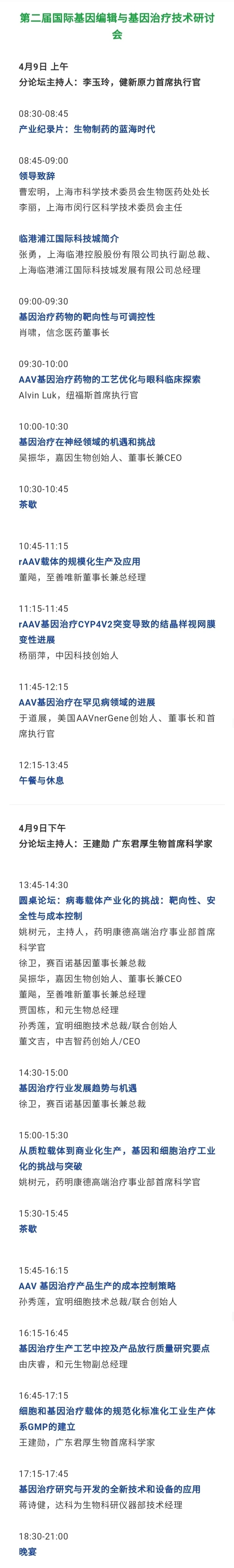 4月9日下午16:15-16:45在分论坛-第二届国际基因编辑与基因治疗技术研讨会,我司CDMO事业部运营总监由庆睿博士,带来基因治疗生产工艺中控及产品放行质量研究要点的主题演讲,届时欢迎大家前来讨论交流。