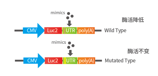 ● 验证miRNA同mRNA靶向互作。将靶mRNA的3’UTR序列插入报告基因载体,再共转入该miRNA,如果萤光素酶活性下降,则提示为其靶序列。