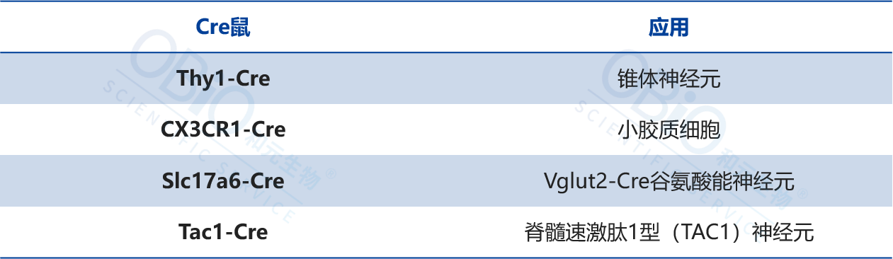 Cre鼠配合重组AAV病毒可在特定脑区实现细胞特异性标记、光遗传学和化学遗传学操纵、在体钙成像记录,或者组织特异性的基因编辑。