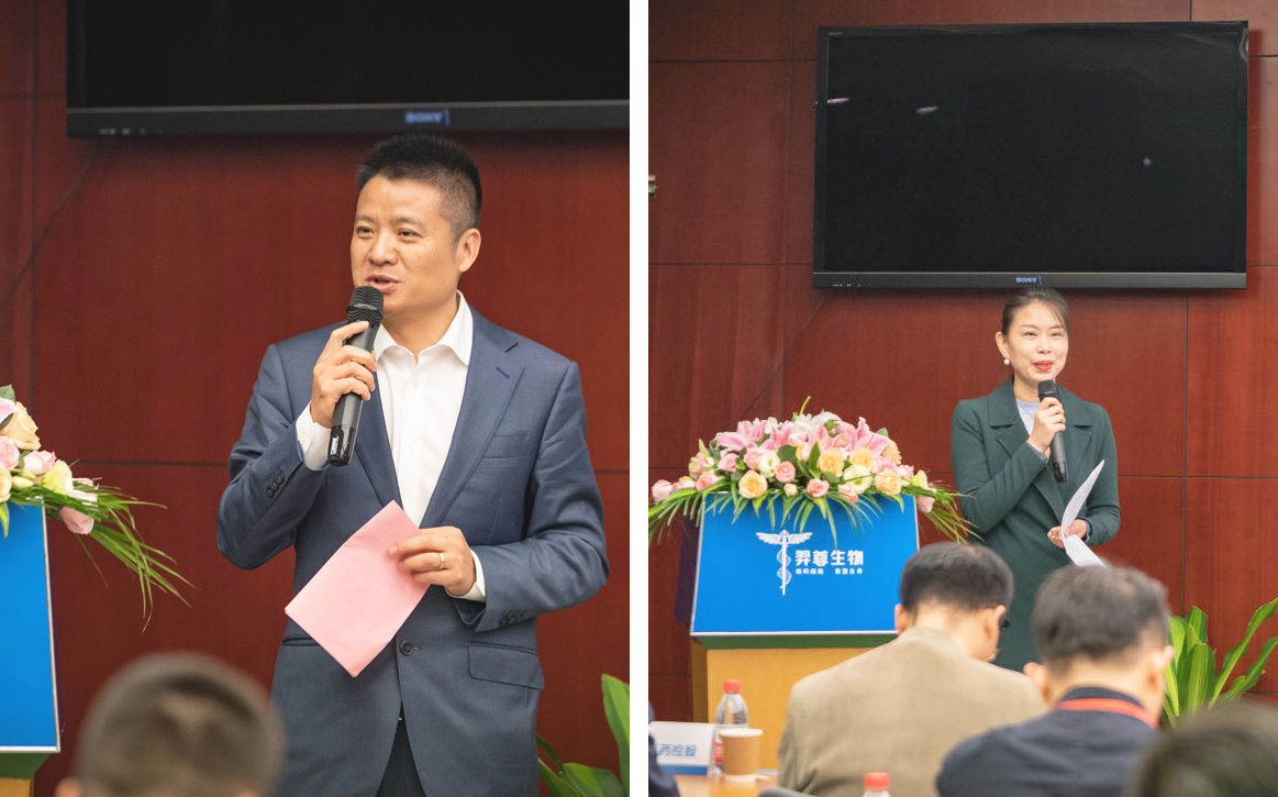 本次活动开始,由杭州市投资促进局副局长盛晓蓉女士,滨江区互联网产业园发展服务中心党委书记、主任王建武先生,米乐生物技术(上海)股份有限公司董事长潘讴东先生,贝壳社董事长姜慧霞女士分别致辞,对“羿尊生物细胞药物GMP生产基地”的启动表示热烈祝贺和支持。