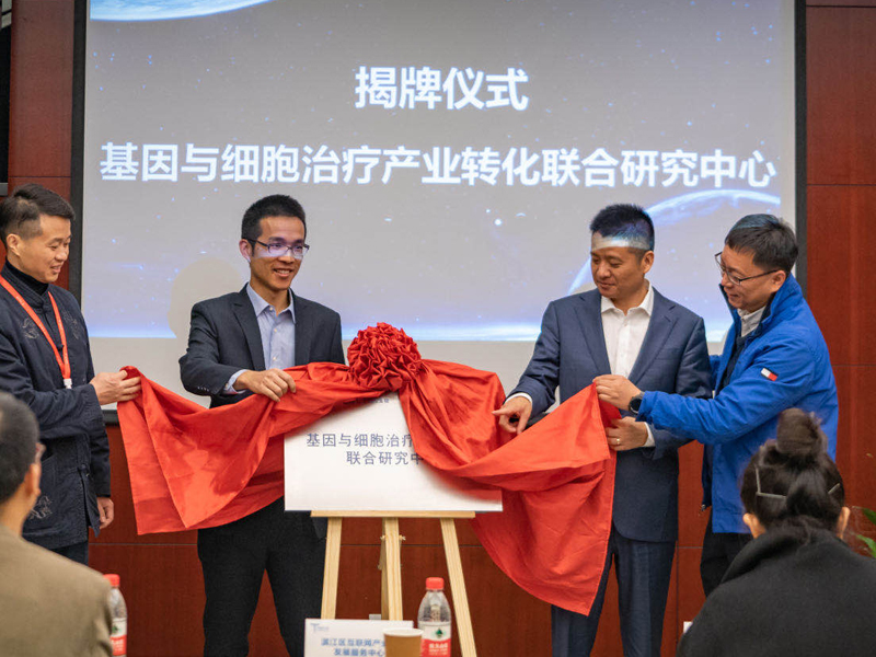 在杭州市投资促进局副局长盛晓蓉女士,滨江区人才办常务副主任高翔先生,杭州国家高新技术产业开发区(滨江)发改局副局长童力先生,滨江区商务局副局长林春盛先生共同见证下,米乐生物技术(上海)股份有限公司董事长潘讴东先生和羿尊生物医药(浙江)有限公司创始人刘凌峰先生上台共同签订了基因与细胞治疗产业转化联合研究中心战略合作协议,并进行基因与细胞治疗产业转化联合研究中心的揭牌仪式。双方深度合作,将发挥各自在专业领域的深厚积淀与特长,加快创新型细胞药物的产业转化,打造长三角地区基因与细胞治疗前沿研发与生产技术平台。